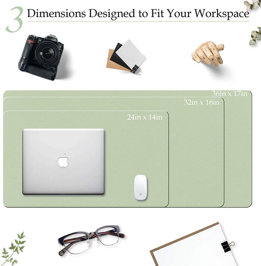 PU Leather Desk Pad with Suede Base, Multi-Color Non-Slip Mouse Pad, 32” X 16” Waterproof Desk Writing Mat, Large Desk Blotter Protector (Light Green)
